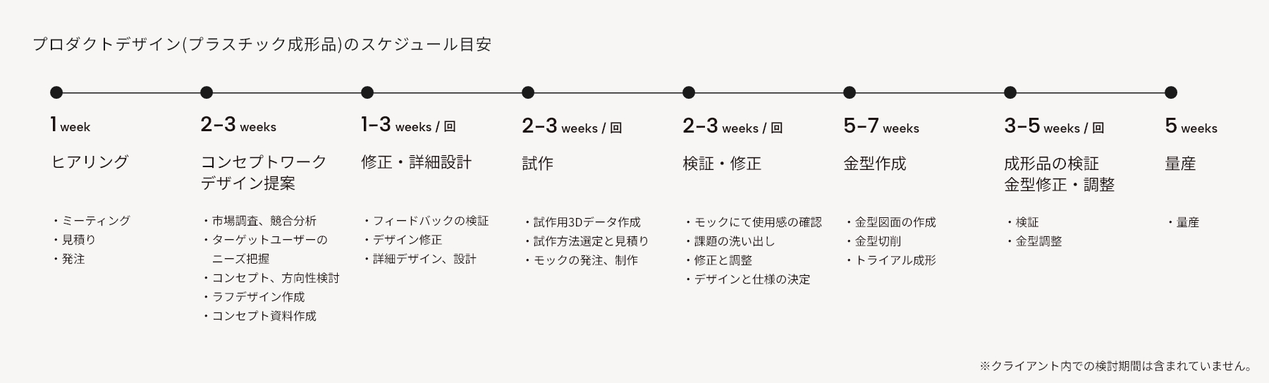 - 素材・表面仕上げの検討 - 検証、改善、修正 - 金型・成形等の製造業者と生産検討
