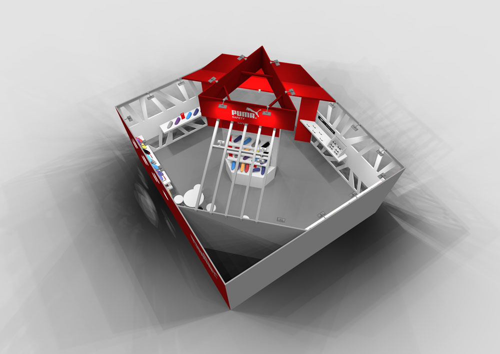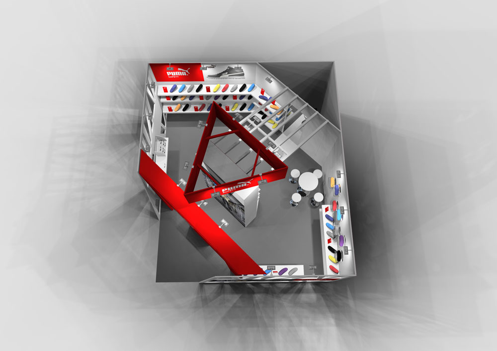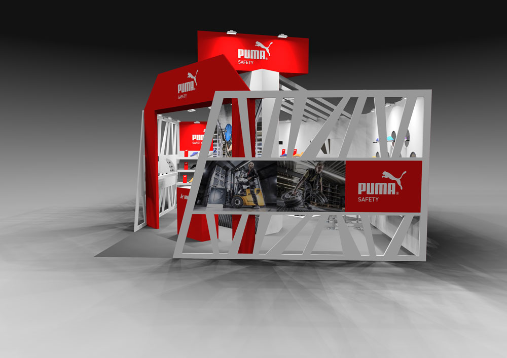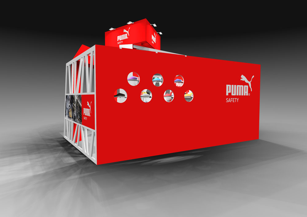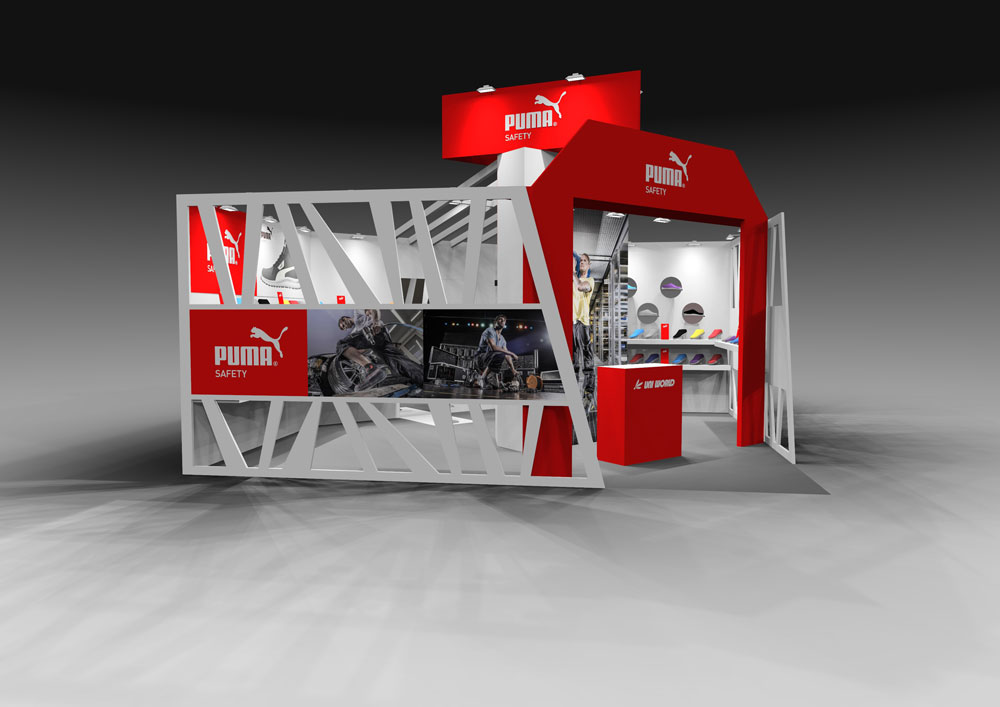 PUMAのセーフティーシューズをメインとしたユニワールド様の展示会ブースデザイン。