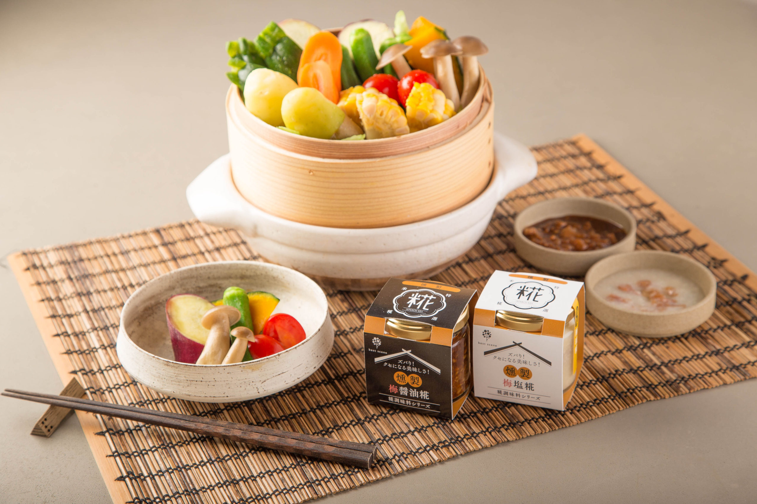 ベストシーン様の糀調味料シリーズのパッケージデザインです。