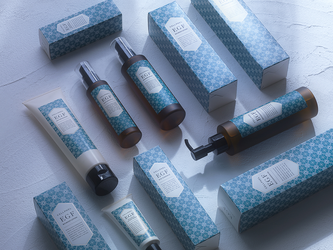 EGFが単なる外的な補完ではなく、細胞そのものにアプローチし、肌本来の再生力を呼び醒ます成分であることから、「生命の根源的な力」をデザインの核に据え、「最先端科学×ナチュラル」という一見相反する要素の調和を追求しました。
